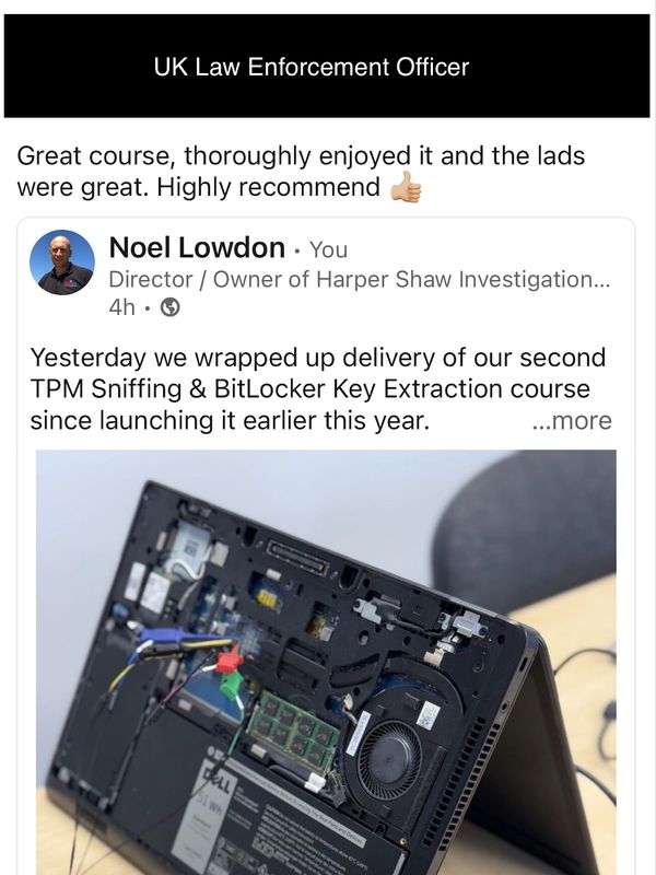 You’ll learn how to use logic analysers to tap SPI and LPC lines, capture and decode TPM traffic in real-time, extract keys, and mount BitLocker-encrypted volumes. The course also covers how TPM protects those keys and how to bypass that protection in a forensic context.